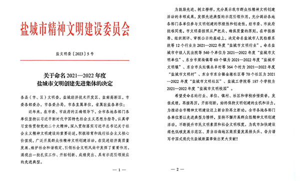 • 喜報(bào)!海興集團(tuán)榮獲“鹽城市文明單位”稱(chēng)號(hào)